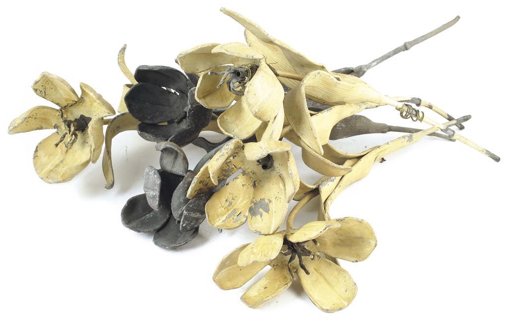 Eleven lead flower stems, six painted,16in (40.5cm) h. (11) Damages.