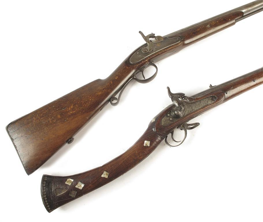 A Turkish percussion rifle, with mother of pearl inlay and a bone butt, 51.25in (130cm) l, and a European rifle with beech stock. (2)
