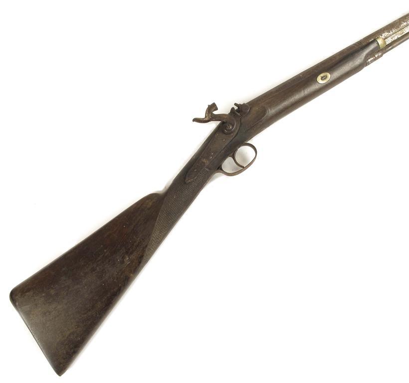 A percussion rifle, signed on the floral engraved lock 'Guy Shaftesbury', with a 28inch part faceted single barrel.