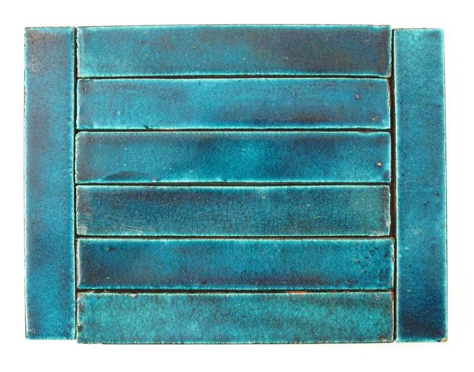 Eight William De Morgan spacer tiles, each glazed blue unsigned 15.5 x 2.5cm.