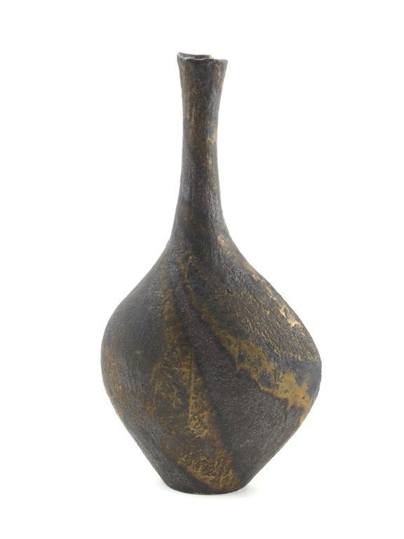 Robert Fournier (born 1915) a stoneware solifleur vase glazed with splashed of gold and bronze impressed seal mark, small chip to top rim 26cm. high