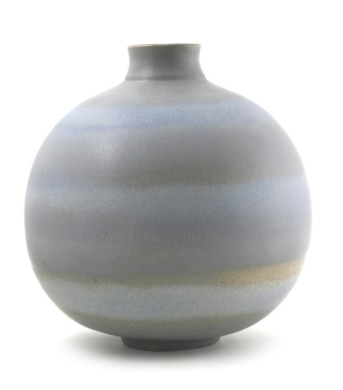 Abdo Nagi (1941-2001) a large stoneware vase, ovoid form, covered in a streaked blue glaze impressed seal mark 33cm. high