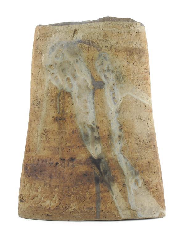 Sheila Fournier a stoneware vase, flatted elliptical form with splash white glaze impressed seal mark 33cm. high
