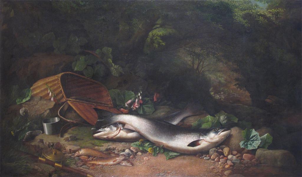 John Russell (act. 1869-1918) The day's catch Printed on label verso signed and dated 1874 verso...