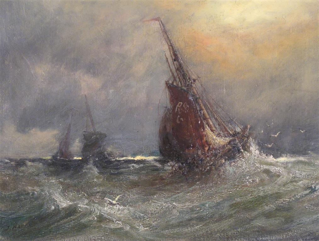 J. Webb (19th Century) Fishing boats in a stormy sea Signed Oil on canvas 25 x 35cm; 9¾ x 13¾in