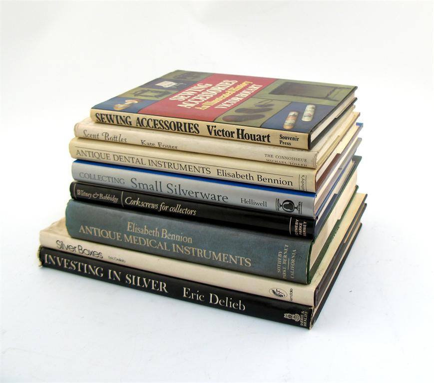 Eight various silver-related reference books; including Bennion, E; Antique Medical Instruments; Silver Boxes, by Eric Delieb, and six other titles. (8).
