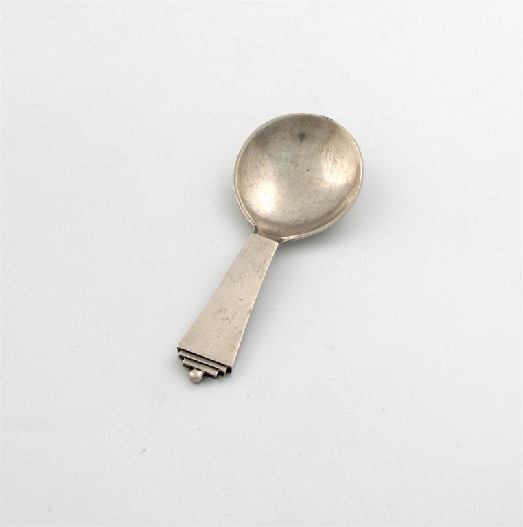 By Georg Jensen, A Danish silver Pyramid pattern caddy spoon, plain bowl, length 9.6cm.