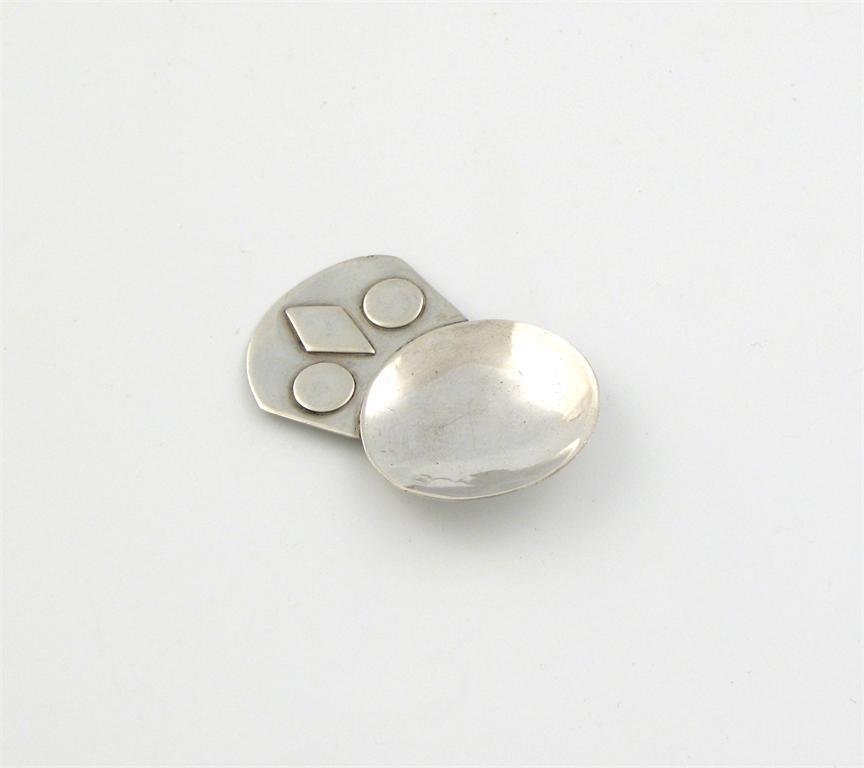 A small modern silver caddy spoon, maker's mark of S.C, London 1982, the tapering handle with diamond and circle decoration, length 4.9cm.