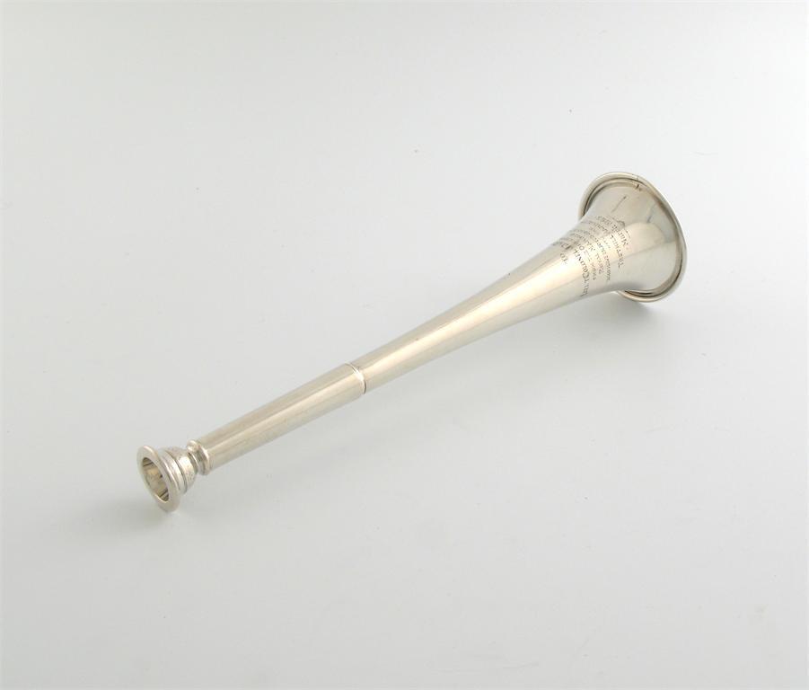 An Edwardian silver presentation hunting horn,