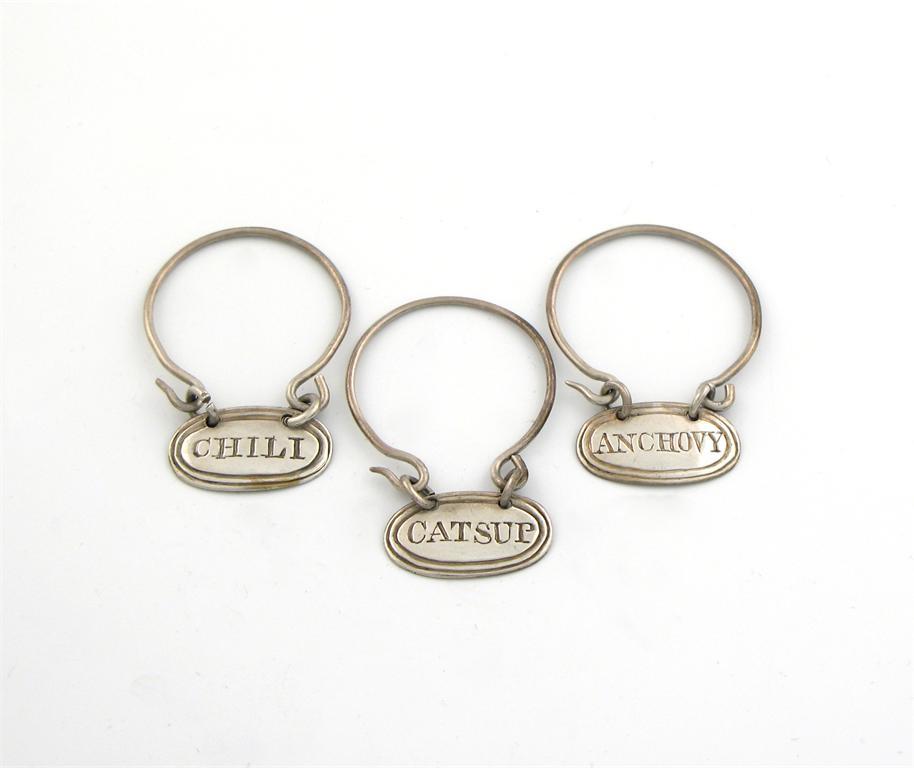 A set of three Victorian silver ring sauce labels