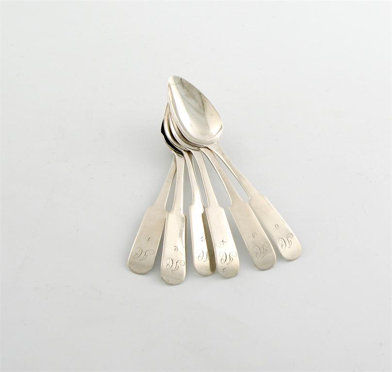 A set of six early 19th century Scottish provincial silver Oar pattern teaspoons