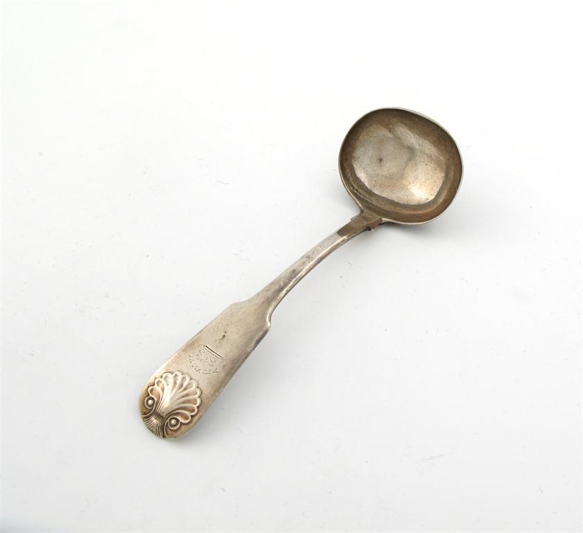 A 19th century Scottish provincial silver Fiddle and Shell pattern sauce ladle,