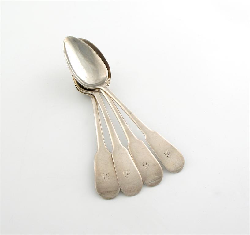 A set of four early 19th century Scottish provincial silver Oar pattern tablespoons