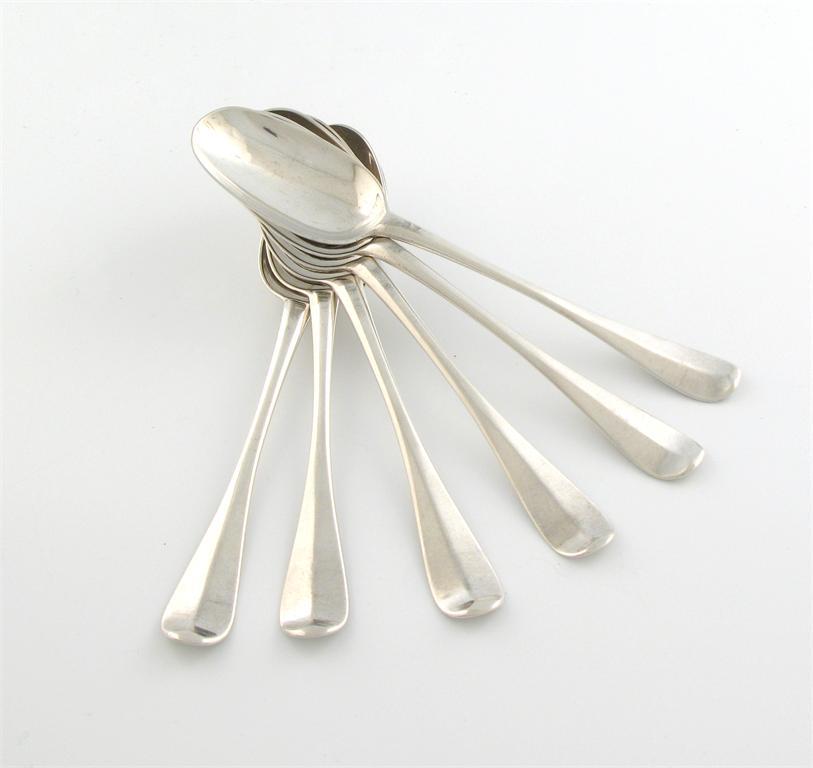A set of six George I Scottish silver Hanoverian rat-tail pattern tablespoons