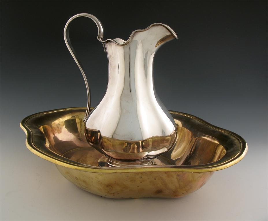 A Russian electroplated ewer, with a matching gilt metal basin,