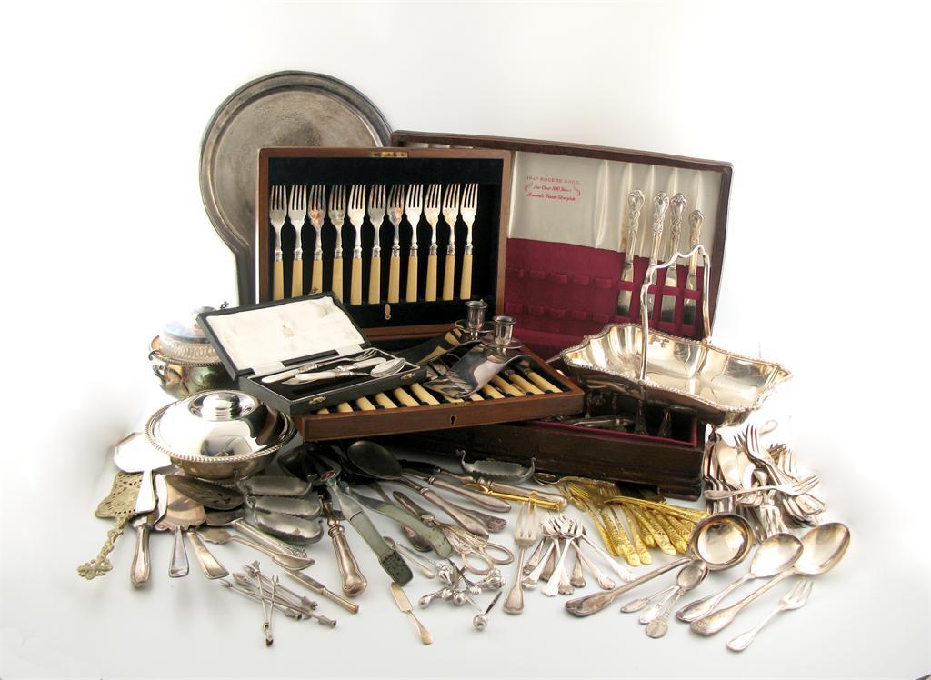 A mixed lot of electroplated items,