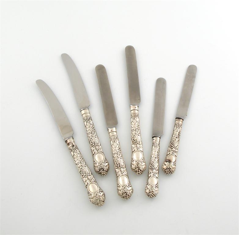 A set of Victorian silver Vine pattern knives