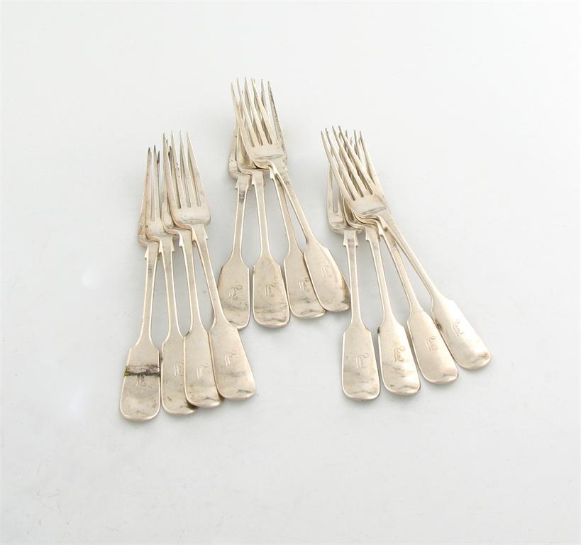 A set of twelve Victorian silver Fiddle pattern dessert forks,