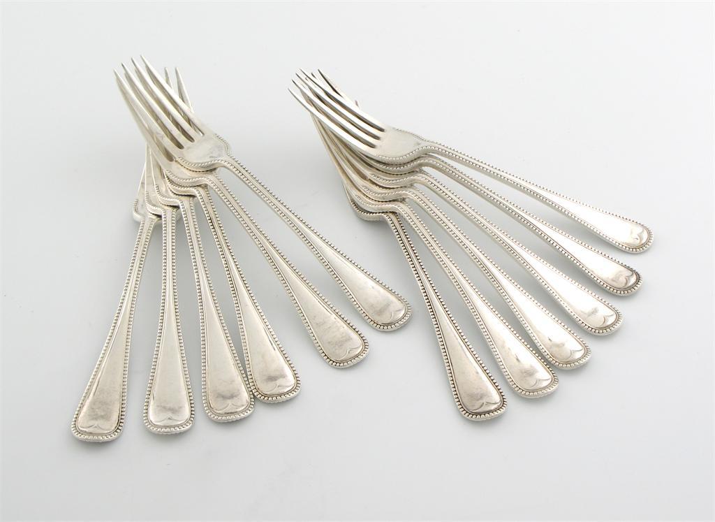 A set of twelve Victorian silver Beaded pattern dessert forks
