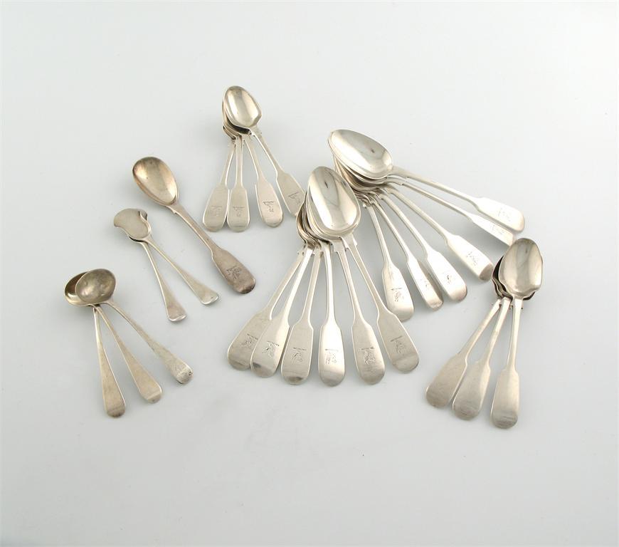 A set of twelve Victorian silver Fiddle pattern teaspoons