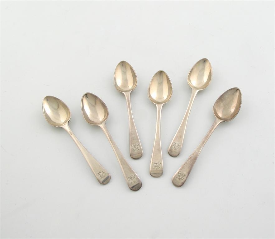 A set of six small George III old English pattern teaspoons