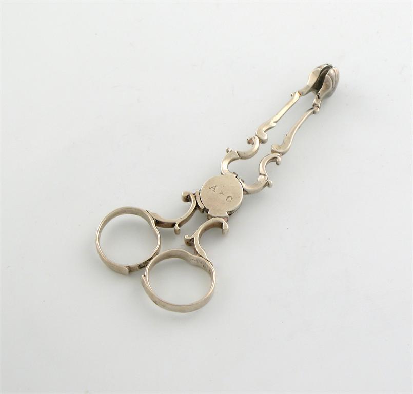 A pair of 18th century silver sugar nips, maker's mark of Henry Plumpton, London circa 1765, ring handles, shell bowls, scratch initialled 'A*C', length 11.7cm, approx. weight 1.5oz.