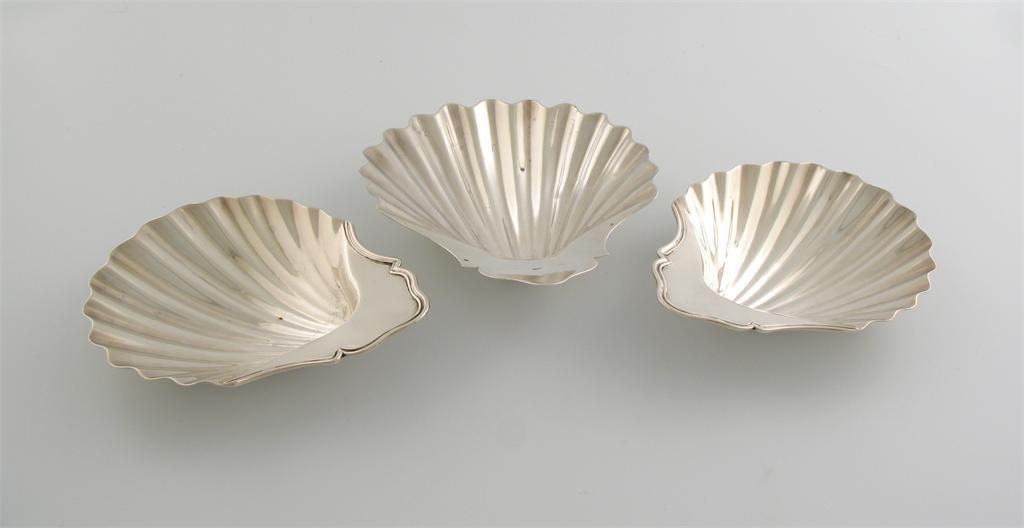 A pair of George III silver butter shells and a single butter shell,