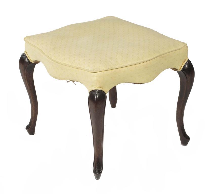 A mahogany stool, the serpentine edge seat on cabriole legs, 16.25in (38.7cm) h, 20in (50.8cm) w, 18.25in (46cm) d.