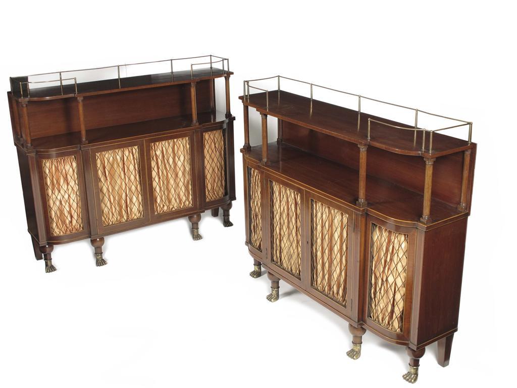 A pair of mahogany breakfront dwarf cabinets in Regency style