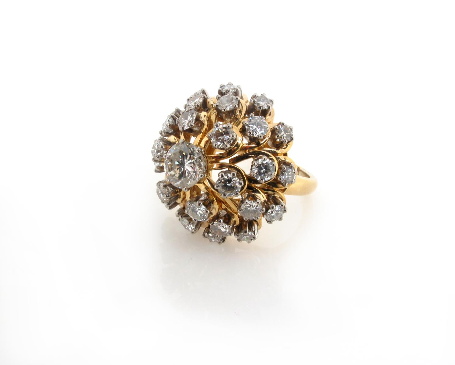 Six pairs of diamond set gold earrings.