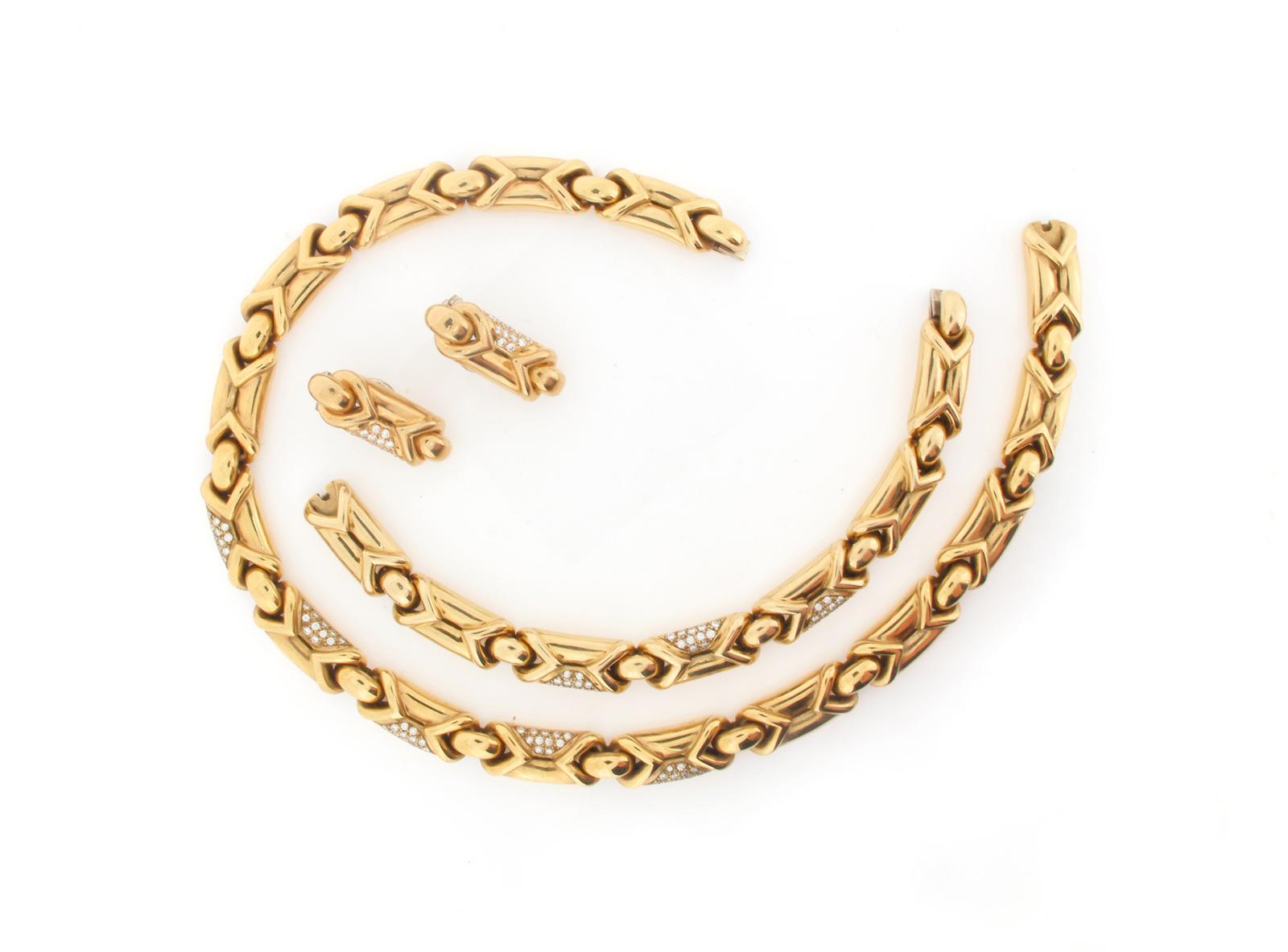A yellow gold fancy rope link necklace, 40cm, 19cm.