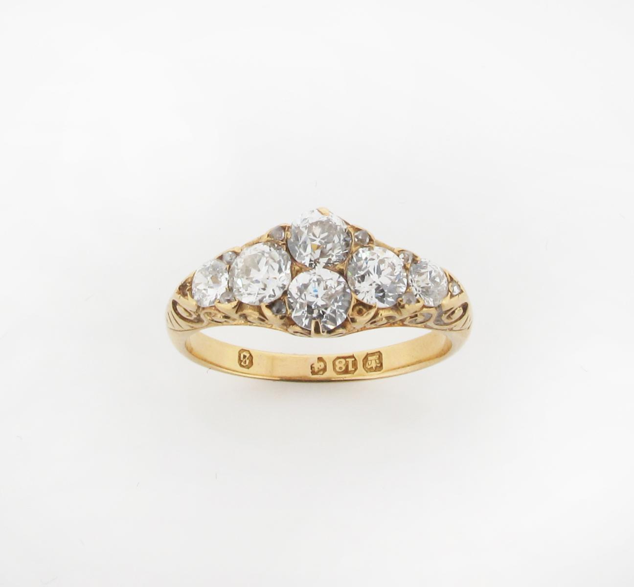 A cased set of dress cufflinks and studs, all of octagonal form, and centred with a diamond on shell ground with tied reeded border. Birmingham marks. 9ct gold. Fitted case.