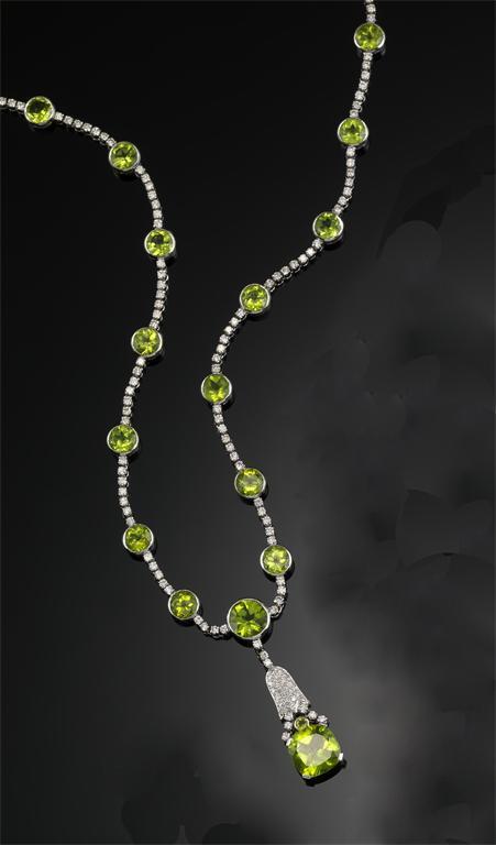 A diamond and peridot necklace