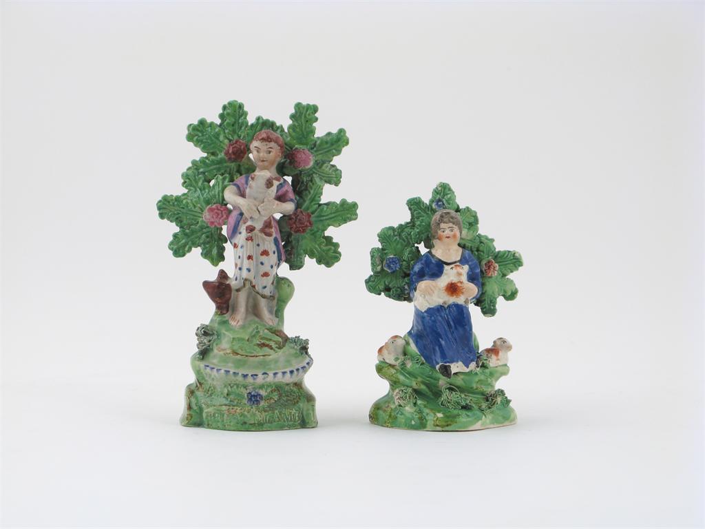 Two pearlware girl and lamb groups c.1800