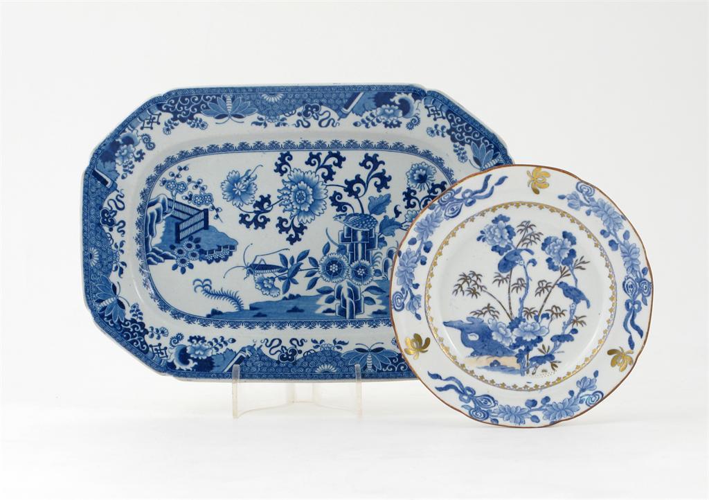 Nine English plates and dishes 19th century, mostly Spode, variously printed with English and Oriental flowers and birds, 26cm max. (9)
