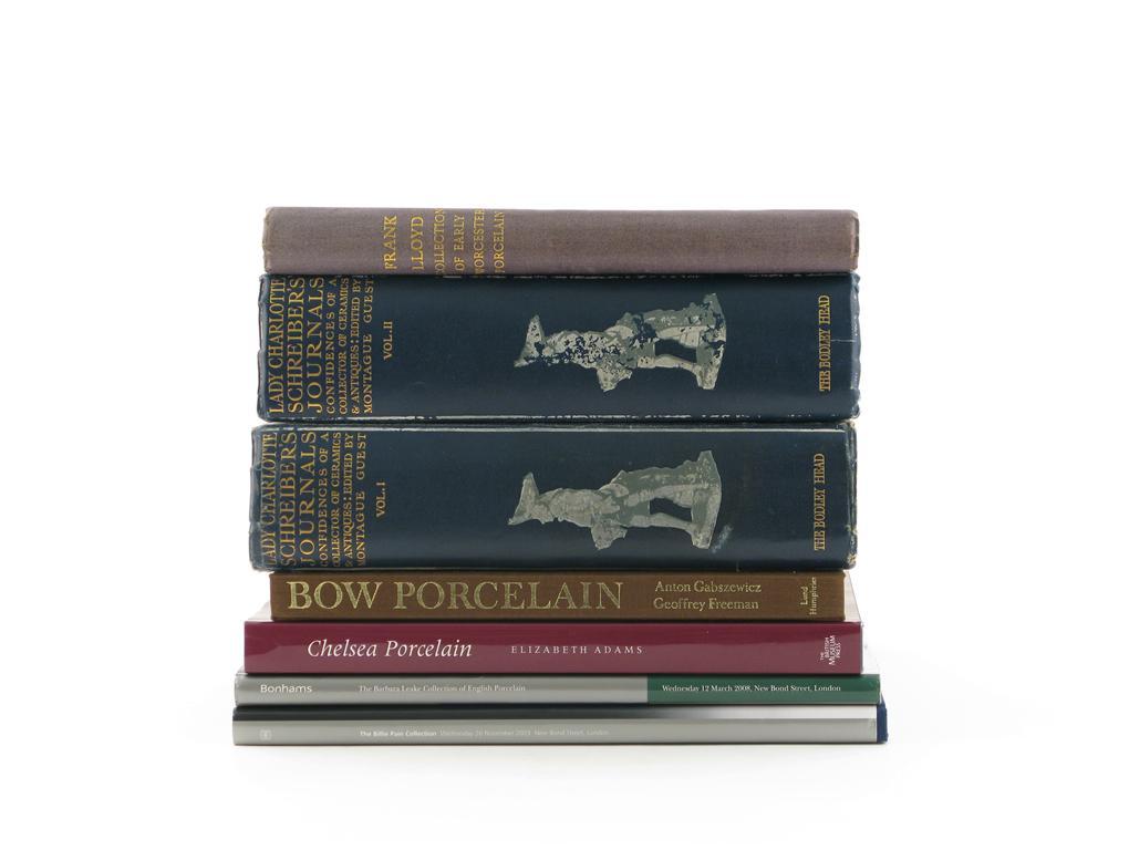 Literature: Lady Charlotte Schreiber's Journal, Vols I and II, and a large number of other books and catalogues primarily on English porcelain, including The Frank Lloyd Collection, and the catalogues for the Barbara Leake and Billie Pain collections. (A lot)
