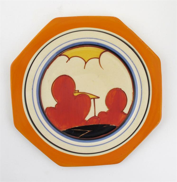 'Red Autumn' a Clarice Cliff Bizarre side plate painted in colours printed factory marks 14cm. diam.