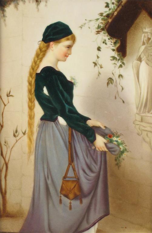 A KPM rectangular plaque, painted with a girl with a long plait, impressed 'KPM' and sceptre mark, c.1880, 23.5cm.