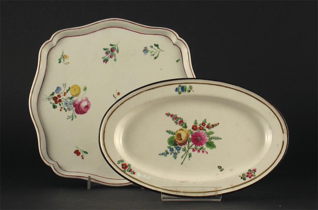 A Doccia dish, and a Naples oval stand, both painted with flower sprays. Cracks to the stand. Both 18th century, 23cm. Max. (2)
