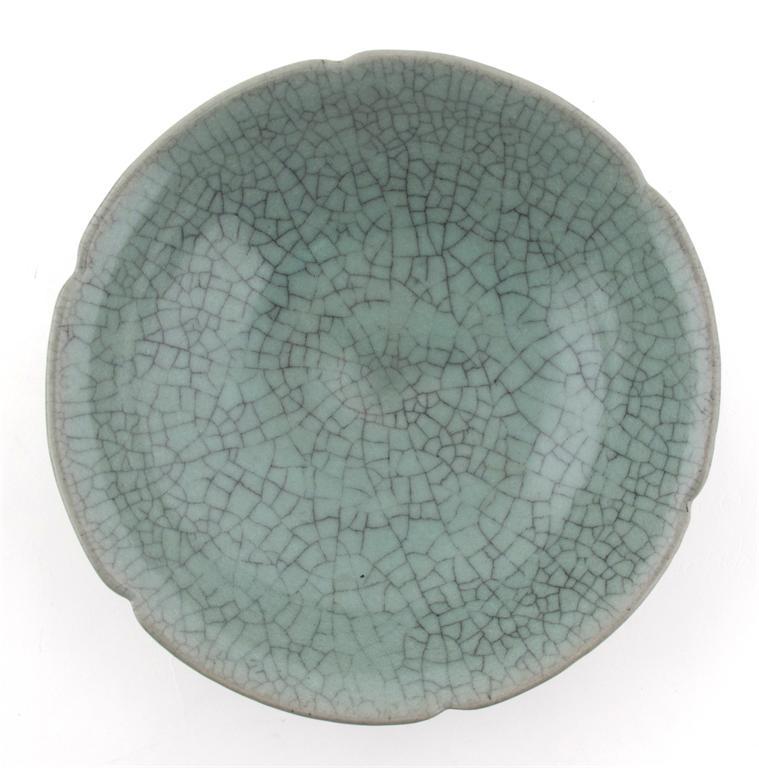 James Walford (born 1951) a stoneware lotus bowl, covered in a crazed celadon ground impressed seal mark 22.5cm. diam.