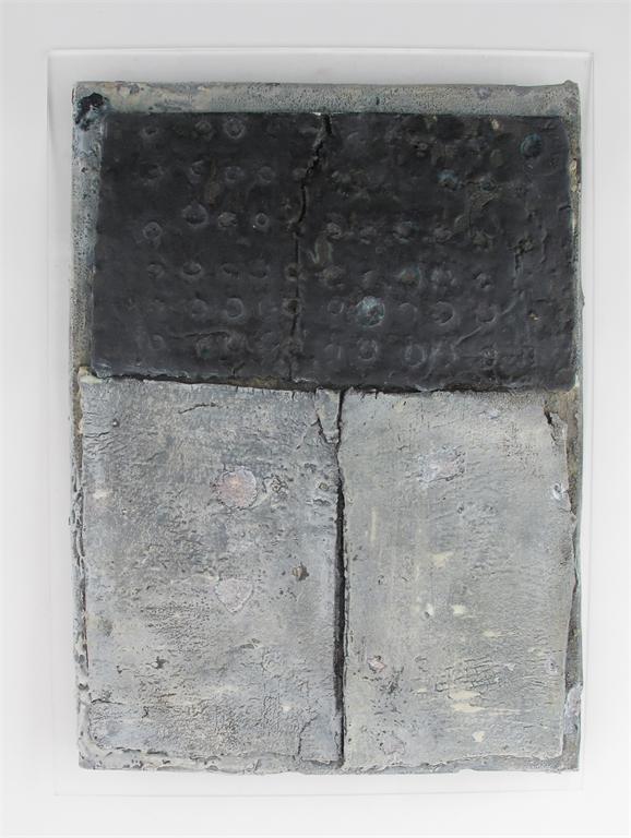 Peter Hayes (born 1946) A ceramic plaque with copper nails, mounted on perspex incised Peter Hayes 2010, 55 x 40cm