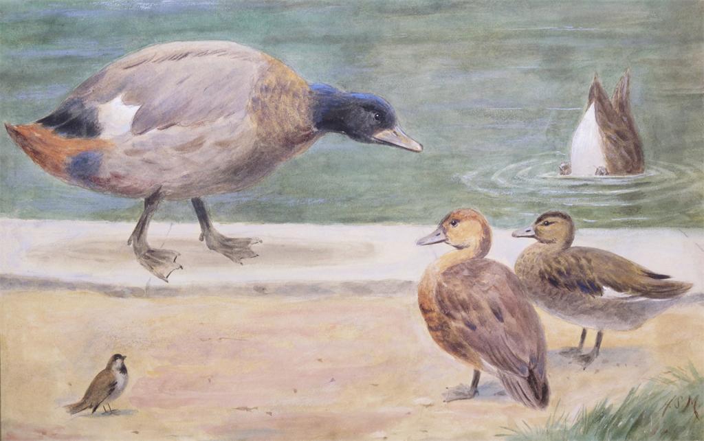 Henry Stacey Marks (1829-1898) Ducks by the pool Signed with initials Watercolour with bodycolour...