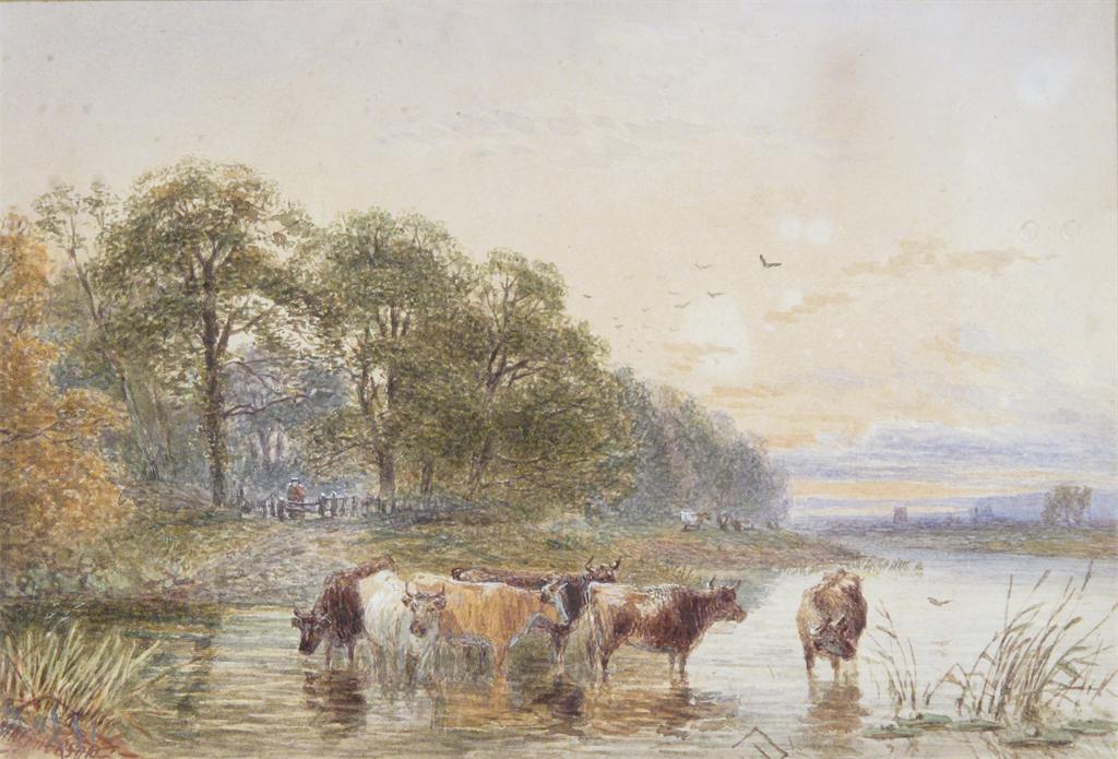John Macpherson (act. 1858-1884) Cattle watering in a river Signed Watercolour heightened with...