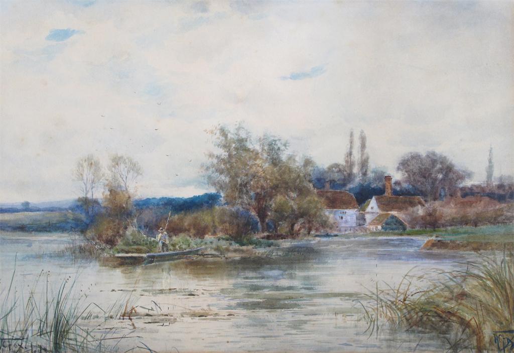 Henry Charles Fox (1860-1929) Angler in a river landscape Signed twice and dated indistinctly...