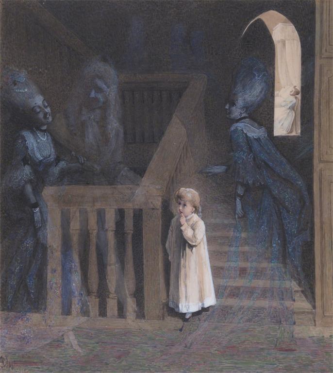 Adelaide Claxton (c.1840-c.1900) The party on the stairs Signed Watercolour with bodycolour...