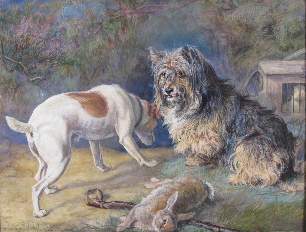 David George Steell (1856-1930) Terriers and a ferret guarding their quarry Signed and dated 1885...