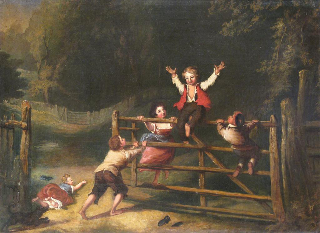 English School 19th Century Children playing on a gate Oil on canvas 43 x 60cm; 17 x 23½in