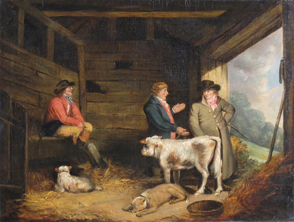 Attributed to Thomas Hand (1771-1804) Striking a bargain Oil on canvas 46 x 61cm; 18 x 24in
