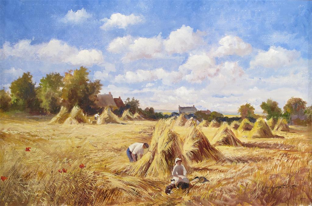 Robert Dumont-Smith (b.1908) Tying the corn stooks Signed Oil on canvas 51 x 77cm; 20 x 30¼in