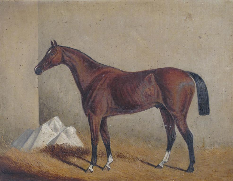 J. F. (late 19th Century) A horse in a stable Signed with initials and dated indistinctly Oil...